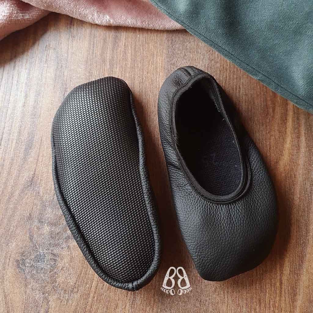 The kids' Omaking black leather slippers boast a minimalist design and can double up as dance or gymnastic shoes for active kids. They're as close to being barefoot as they can be while also providing a layer of protection and a hint of warmth.