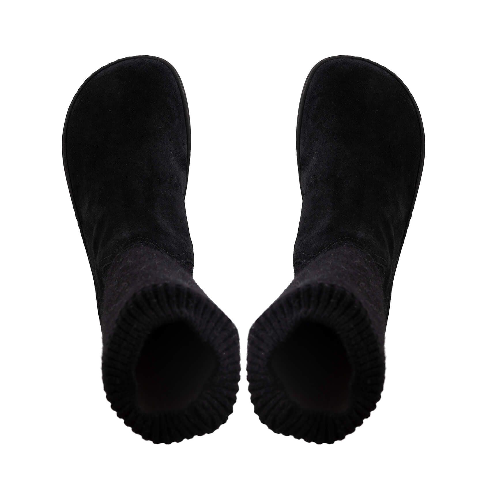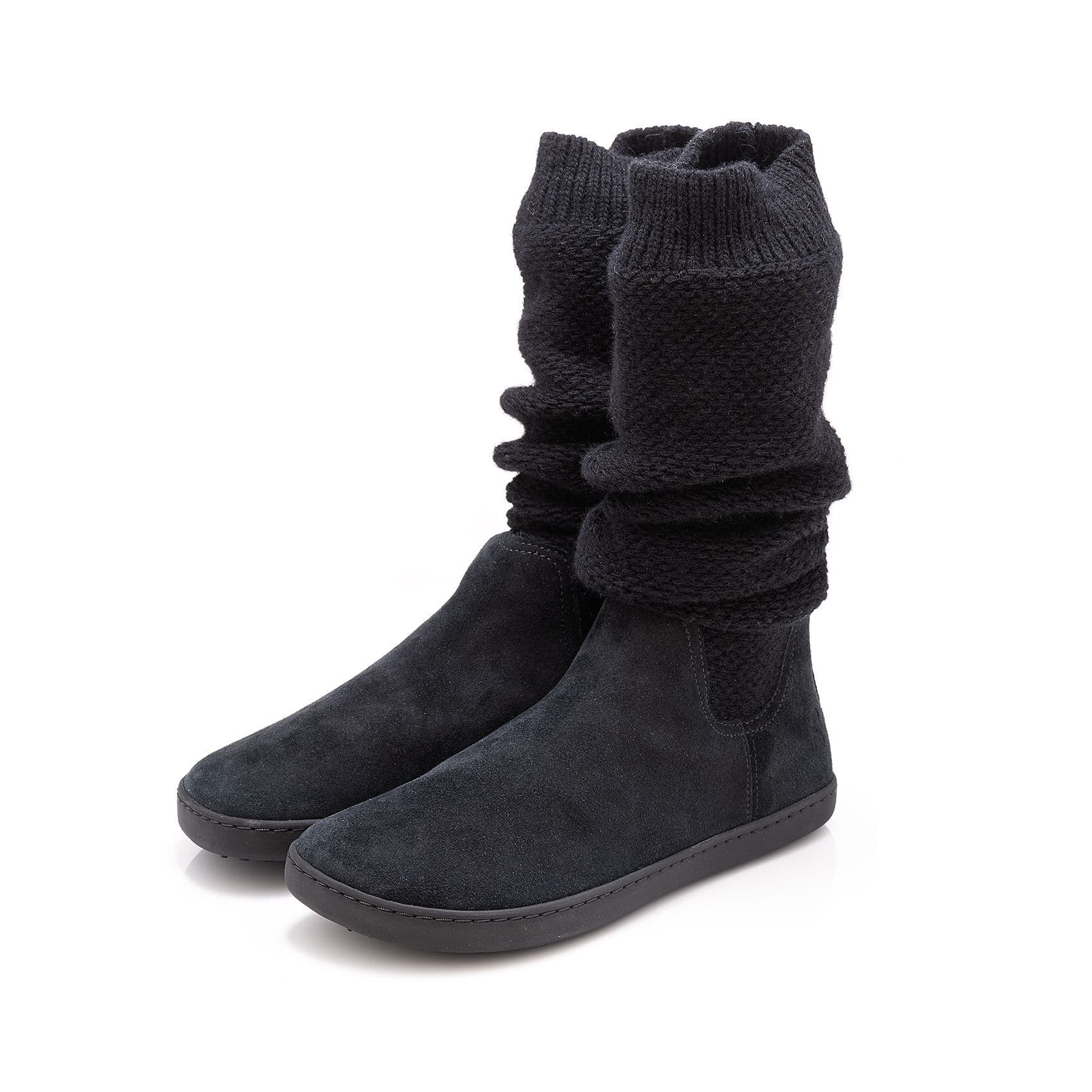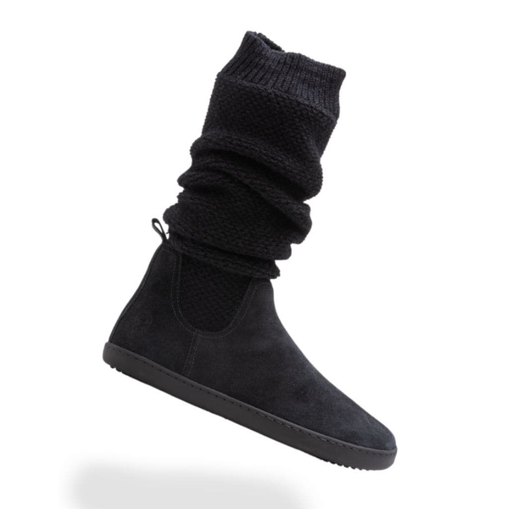Warm winter barefoot boots with a brushed leather upper and knit cuff, offering a flexible, natural feel with every step.